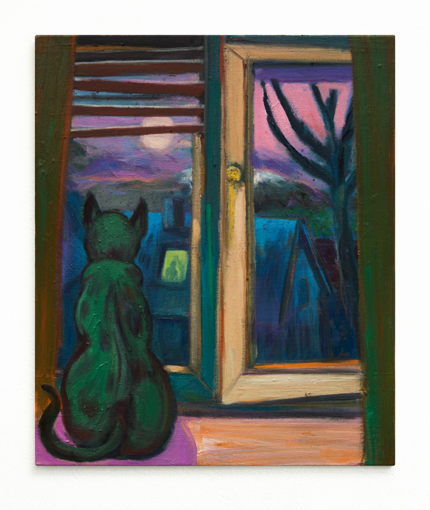 Grüner Kater vor thüringischer Landschaft | Öl, Ölkreide auf Leinwand | 60 x 50 cm